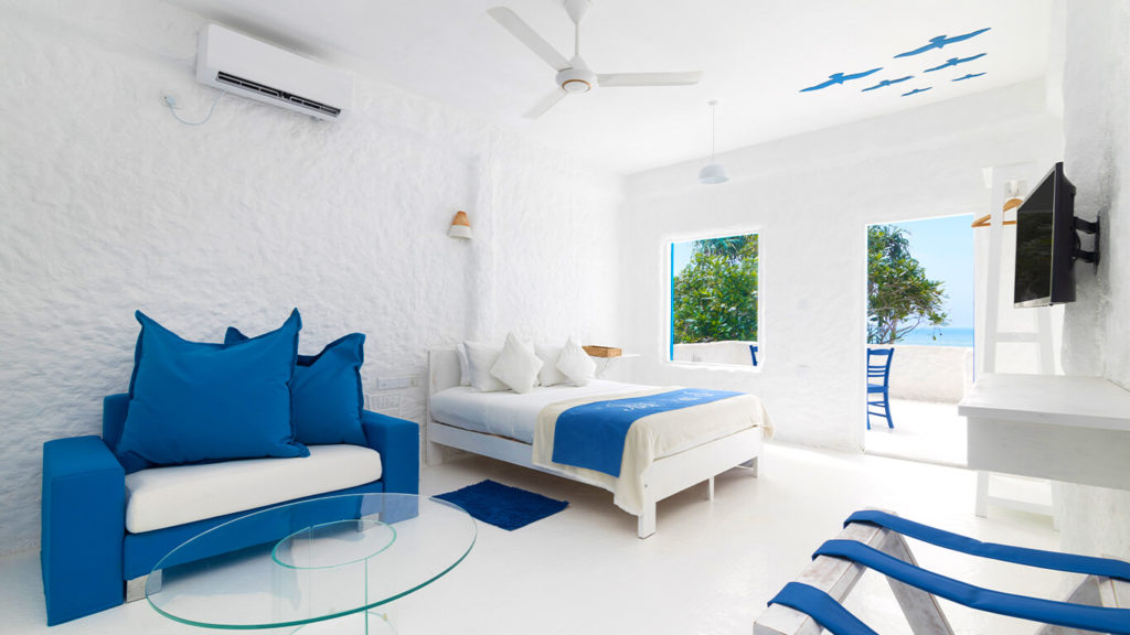 Our beautiful beach villa inspired by the Greek city of Santorini is located in Talalla, a town just beyond Matara. The Villa is located in a cozy, unique and picturesque setting, so your eyes can feast on a breathtaking view of the dusk and dawn escaping the usual crepuscular lifestyle.